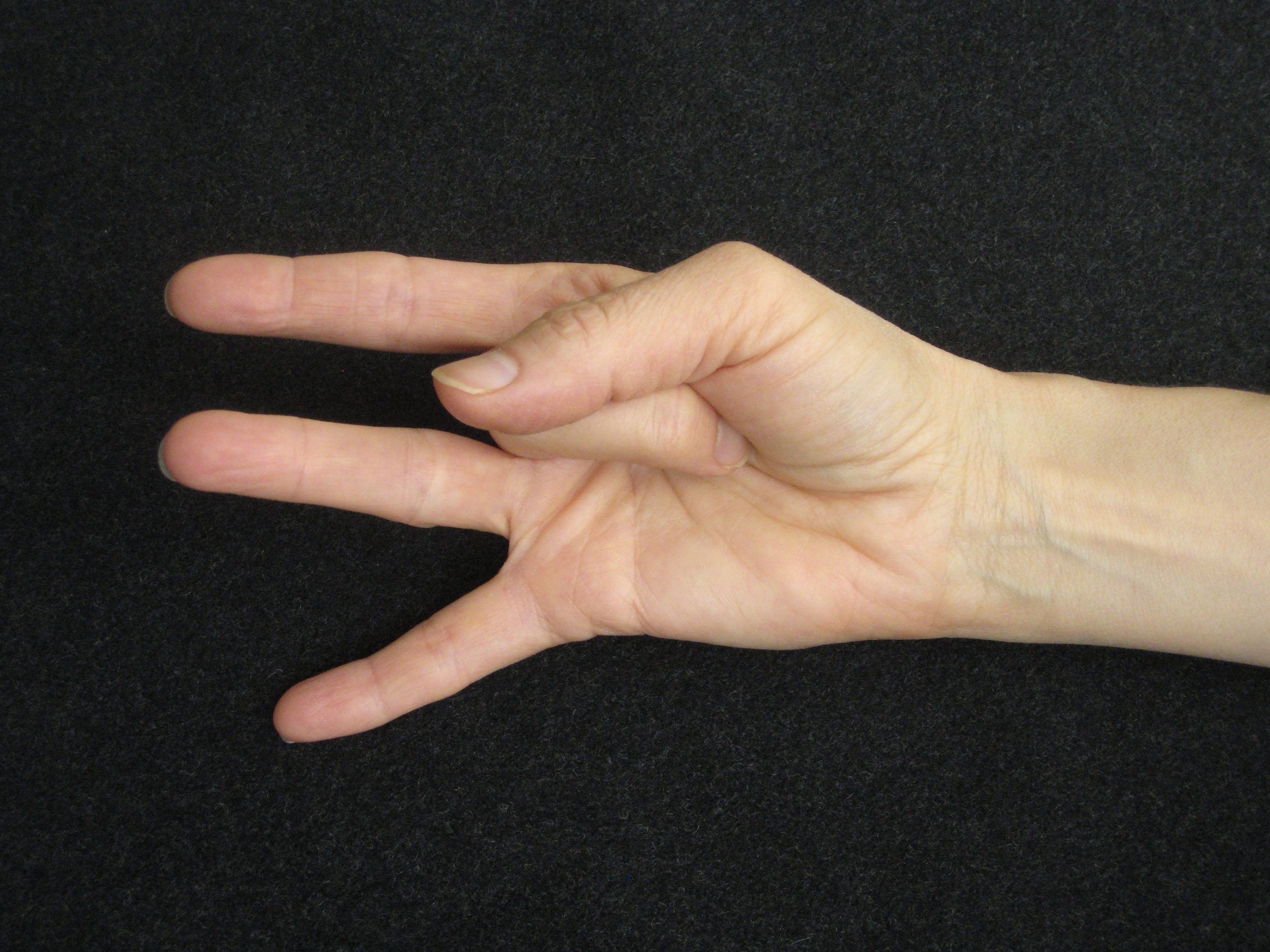 Bend the middle finger and touch it to the base of the thumb